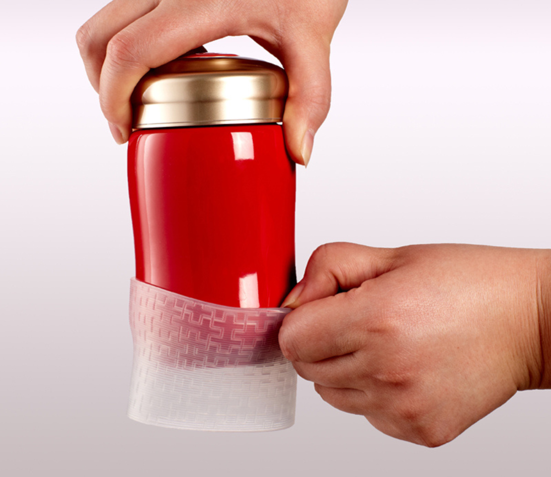 Tumbler SleeveRead moreThe artistic groove inner surface of the silicone sleeve provides improved heat insulation, and suits the shape of the tumbler well.