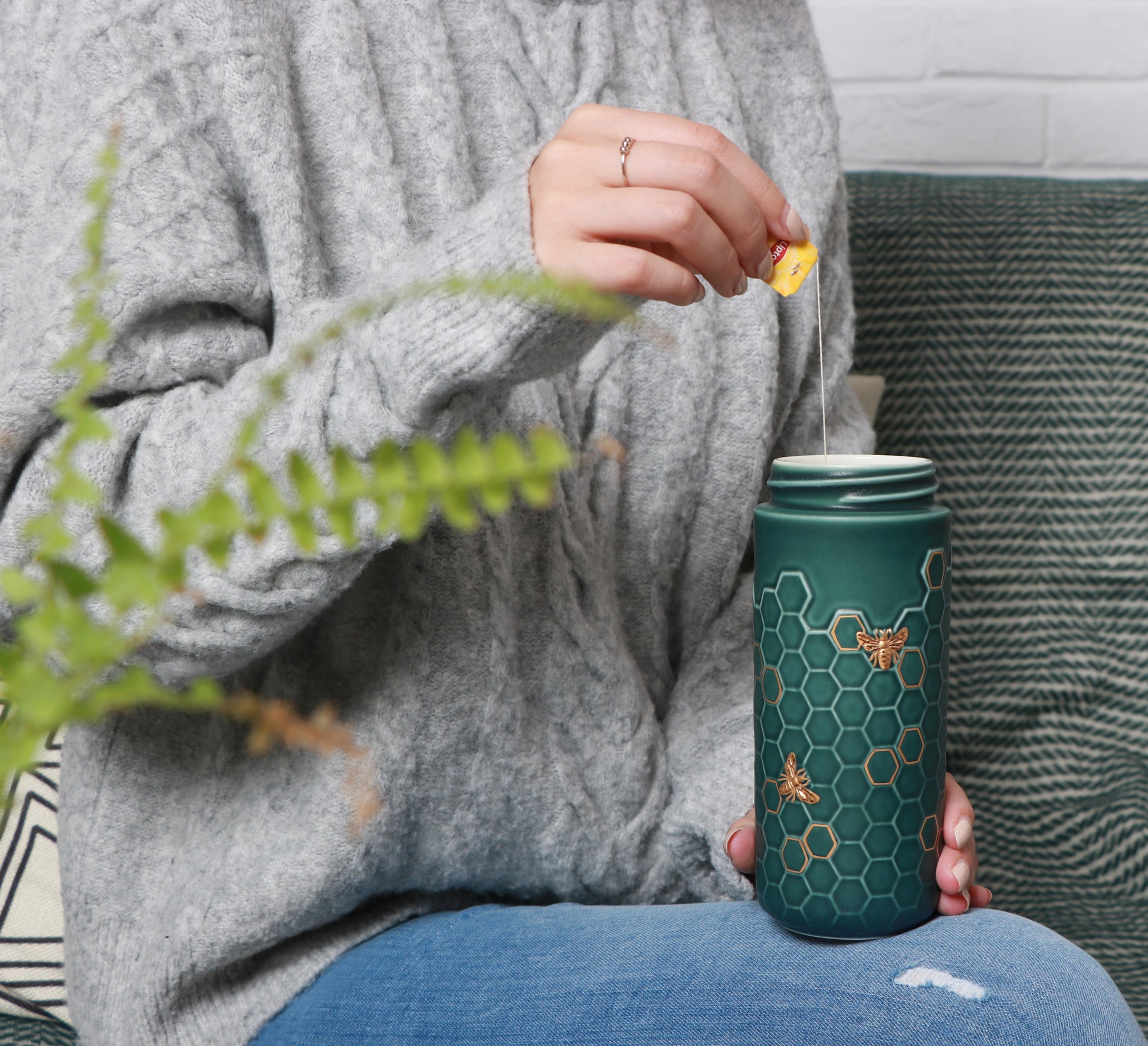 Honey Bee Ceramic Travel Mug / Gold 12.3 oz