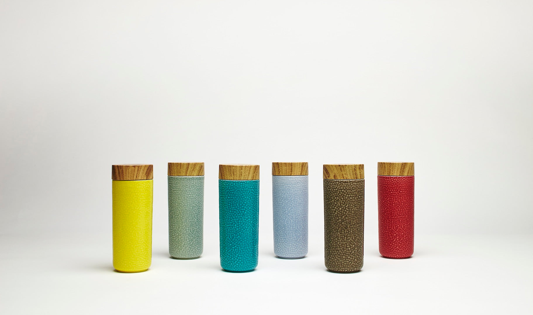 Eco-friendly throughout, the mugs’ walnut wood-effect lids are hermetically sealed, with an ABS outer cap, a new-generation co-polyester Tritan inner cap and silicone cover to preserve liquid temperature and prevent leakage.